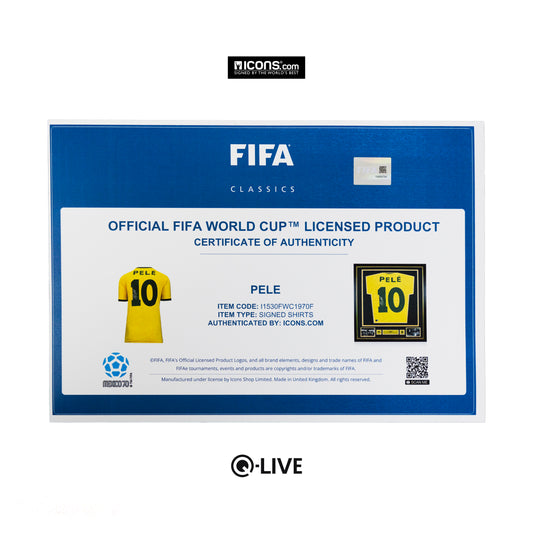 Pele Official 1970 FIFA World Cup™ Back Signed and Framed Retro Brazil Home Shirt