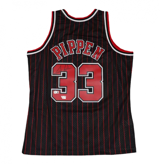 Scottie Pippen Chicago Bulls Autographed Mitchell & Ness Black Pinstripe 1995-96 Swingman Jersey
