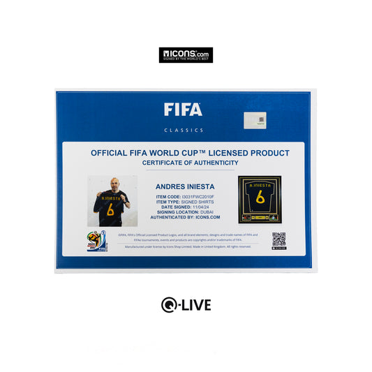 Andres Iniesta Official 2010 FIFA World Cup™ Back Signed and Framed Spain 2010 Away Shirt
